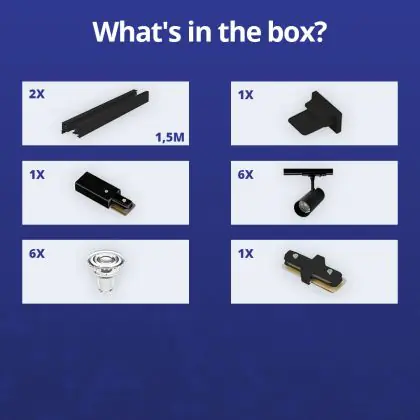 | Herstellername | Complete Straight 3-meter 1-Phase Track Set Black incl. 6x Spot fixture + GU10 2700K 3W Dim – 2x 1.5 | |