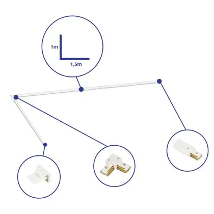 Beschreibung Bright Choice Rail Set 1-Phasen L 1x 1,5 Meter Weiß |incl. Abschlusskappe, Stromanschluss und L -Verbinder