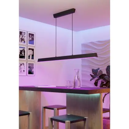 Die Eglo Pendelleuchte Simolaris-Z Aluminium Stahl Schwarz 35W 4200lm - 827-865 Abstimmbares Weiß + RGB | IP20 - Zigbee Dimmbar sorgt für eine angenehme Ausleuchtung und punktet durch modernes Design. Diese Leuchte ist speziell zur Montage an der Decke vorgesehen.