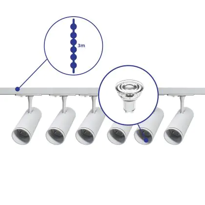 | Herstellername | Complete Straight 3-meter 1-Phase Track Set White incl. 6x Spot fixture + GU10 2700K 3W Dim – 2x 1.5 | |