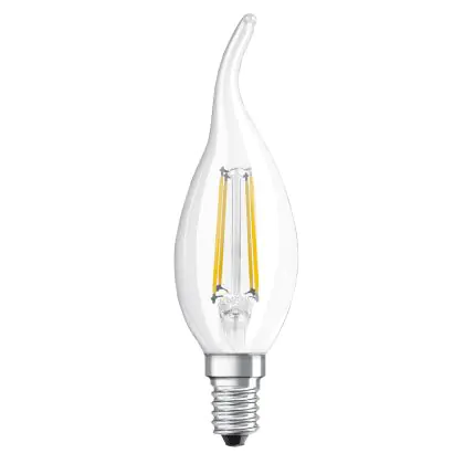 Die Ledvance Classic LED E14 Kerze Fadenlampe Klar 4W 470lm - 827 Extra Warmweiß | Ersatz für 40W ist eine effiziente E14 LED-Lampe mit Retrodesign und der perfekte Ersatz für Ihre konventionellen 40W Lampen mit E14. Zudem strahlt sie Licht in der Farbtemperatur 2700K - Extra Warmweiß aus und punktet durch eine lange Lebensdauer.