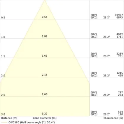 Der LED-Deckenspot kommt mit der Farbtemperatur 3000K - Warmweiß daher. Als Faustregel gilt: Je niedriger der Kelvinwert, desto gemütlicher wirkt das Licht.