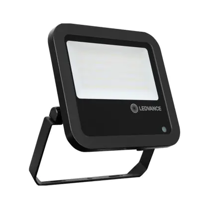 Der Ledvance LED-Scheinwerfer 80W 4000K 10000lm IP65 ist in stilvollem Schwarz gehalten und zeichnet sich durch seinen Abstrahlwinkel von 100°x100° aus. Dank der hohen Robustheit kann die Leuchte problemlos in Außenbereichen eingesetzt werden.