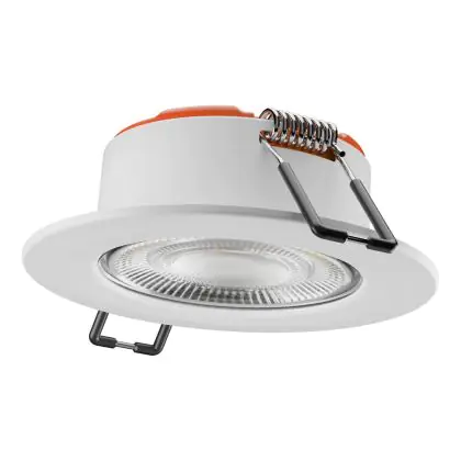 Der Ledvance Spot Combo Fire Rated FIX Weiß 5W 560lm 60D - 840 Kaltweiß | Ausschnitt 70 - IP65 - Dimmbar ist ein LED-Einbaustrahler, welcher Licht in der Farbtemperatur 4000K - Kaltweiß ausstrahlt und durch eine lange Lebensdauer punktet. Die Einbauleuchte ersetzt konventionelle Halogenstrahler.
