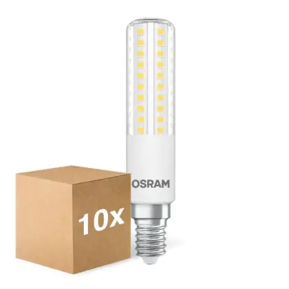 Die Mehrfachpackung 10x Osram Special T Slim LED E14 Klar 7W 806lm - 827 Extra Warmweiß | Dimmbar - Ersatz Für 60W ist eine effiziente E14 LED-Lampe und der perfekte Ersatz für Ihre konventionellen 60W Lampen mit E14-Sockel. Zudem strahlt sie Licht in der Farbtemperatur 2700K - Extra Warmweiß aus und punktet durch eine lange Lebensdauer.