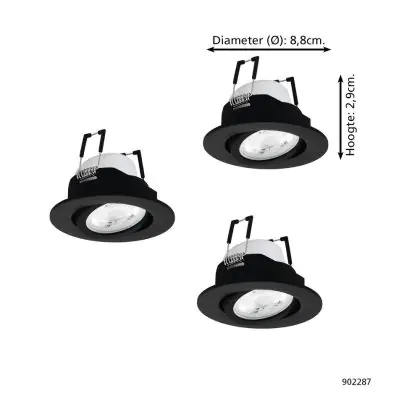Beschreibung Mehrfachpackung 3x Eglo LED-Spot Saliceto-Z Aluminium Schwarz 4.7W 440lm - 827-865 Abstimmbares Weiß + RGB | 88mm - Ausschnitt 68mm - IP20 - Zigbee Dimmbar