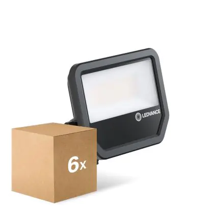 Der Mehrfachpackung 6x Ledvance LED-Scheinwerfer Aluminium Schwarz 41W 5500lm 100D - 830 Warmweiß | IP66 - Symmetrisch ist ein Scheinwerfer und strahlt Licht in der Farbtemperatur 3000K - Warmweiß aus. Zudem punktet der LED-Scheinwerfer durch eine lange Lebensdauer.