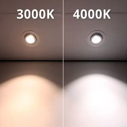 Der LED-Deckenspot kommt mit der Farbtemperatur daher. Als Faustregel gilt: Je niedriger der Kelvinwert, desto gemütlicher wirkt das Licht.