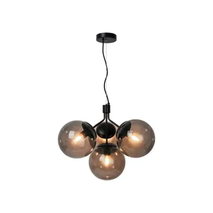 Bei der schwarzen Pendelleuchte Ivona handelt es sich um eine Neuinterpretation eines klassischen Kronleuchters, wobei das traditionelle Design durch einen etwas organischeren und moderneren Look akzentuiert wird. Mit 4 Glaskugeln strahlt Ivona ein tolles Licht aus, das für einen modernen und extravaganten Stil sorgt. Das Glas dieser Leuchte ist mundgeblasen und handgefertigt. Aufgrund dieses einzigartigen Verfahrens können im Glas Luftblasen entstehen und die Dicke des Glases kann ebenfalls variieren. Dies verleiht dem Glas seinen einzigartigen Charakter und sein lebendiges Erscheinungsbild.
