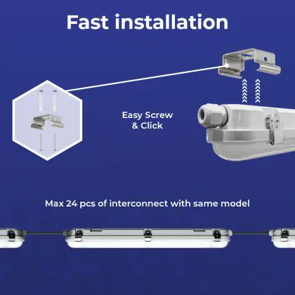 Die Noxion LED-Deckenleuchte Poseidon V3.0 ist ein idealer Ersatz für herkömmliche Leuchtstofflampen. Dank ihrer hohen Effizienz von bis zu 140 Lumen pro Watt spart die Poseidon V3.0 bis zu 50 % Energie. Diese wasserdichte LED-Leuchte hat die Schutzklassen IP65 und IK10, was bedeutet, dass die Leuchte sowohl im Innen- als auch im Außenbereich eingesetzt werden kann. Sie ist auch ideal für nasse und / oder staubige Bereiche und somit perfekt für den Einsatz in Lagerhallen, auf Parkplätzen oder in Tunneln. Der halbtransparente Prismadiffusor sorgt für eine angenehme Lichtpräsentation. Ein weiterer Vorteil ist die Durchgangsverdrahtung, so können Sie ganz einfach mehrere Produkte miteinander verbinden. Wenn Sie Ihre TL-Leuchten durch die Poseidon LED-Leuchte ersetzen, werden Sie enorme Einsparungen bei den Energie- und Wartungskosten und garantieren eine kurze Amortisationszeit.