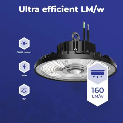 Aufgrund des geringen Energieverbrauchs von nur 100W sparen Sie mit der LED-Hallenleuchte von Noxion bis zu 90 % Ihrer Energie - sowie Instandhaltungskosten gegenüber einem konventionellen Modell.