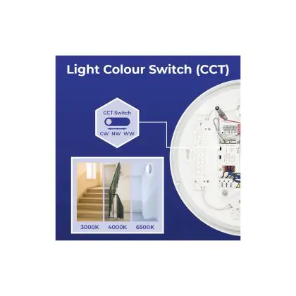 Die Noxion LED-Wand- und Deckenleuchte Corido V2 Weiß 16W 1600lm 830-840-865 CCT | IP44 ist eine Feuchtraumleuchte. Sie strahlt Licht in der Farbtemperatur aus und punktet durch eine lange Lebensdauer. Diese Leuchte ist speziell zur Verwendung in Feuchträumen (Keller, Waschräume, etc.) vorgesehen.
