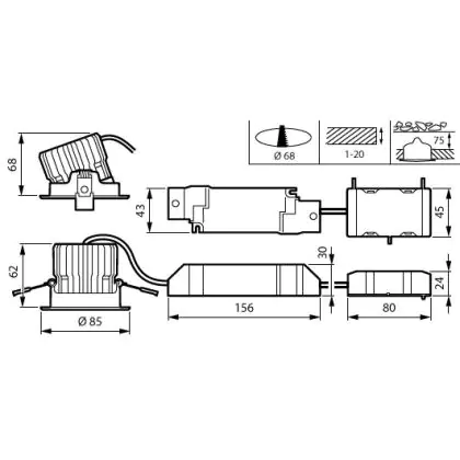 Beschreibung Philips Led-Spot RS156B CoreLine Aluminium Weiß 12W 1300lm 36D - 830 Warmweiß | 85mm - Ausschnitt 68mm - IP20/44 - Interact Dimmbar