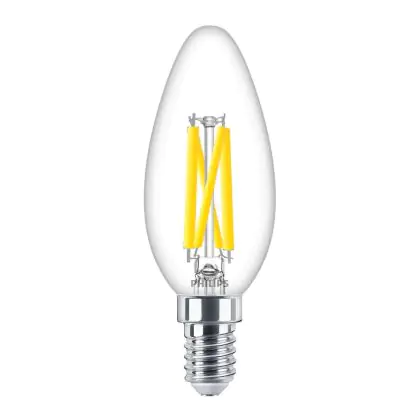 Die Philips MASTER LED E14 Kerze Fadenlampe Klar 5.9W 806lm - 922-927 Dim To Warm | Höchste Farbwiedergabe - Dimmbar - Ersatz Für 60W ist eine effiziente E14 LED-Lampe mit Retrodesign und der perfekte Ersatz für Ihre konventionellen 60W Lampen mit E14. Zudem strahlt sie Licht in der Farbtemperatur 2200K - 2700K Dim To Warm aus und punktet durch eine lange Lebensdauer.