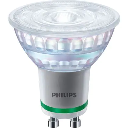 Die Lumeneffizienz des GU10 LED-Strahlers von Philips liegt bei lm/W. Herkömmliche GU10-Strahler hingegen besitzen ein Lumen zu Watt-Verhältnis von 10-15 lm/W. Somit sparen Sie allerhand Energiekosten. Hinzu kommt die lange Lebensdauer des GU10 LED-Strahlers von 50000. Somit spendet er deutlich länger Licht als ein herkömmlicher Halogenstrahler, der mit nur rund 3000 Stunden daherkommt. Das spart Ihnen zusätzlich Austausch- und Wartungskosten.