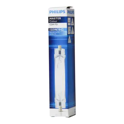 CDM-TD sind zweiseitige kompakte Entladungslampen mit einem brillanten Licht und ausgezeichneter Farbstabilität aufgrund ihrer Keramik-Brenner-Technologie. Die Philips CDM-TD 150W 942 RX7s (MASTERColour) ist eine kompakte Leuchtstofflampe mit einem RX7S Lampensockel. Dieser Lampensockel ermöglicht einen einfachen und schnellen Austausch. Es ist nicht möglich, diese Lampen zu dimmen.