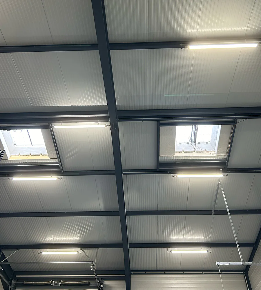 Unser Kunde stellt manuelle und elektrische Trittleitern sowie Aluminiumrampen für alle Arten von Fahrzeugen her. Die größte Herausforderung bestand darin, eine Beleuchtung zu liefern, die sowohl für die Arbeits- als auch Lagerbereiche ideal ist. Sie muss also leistungsstark als auch gleichmäßig sein.